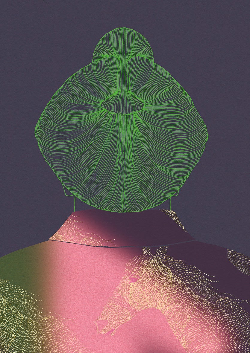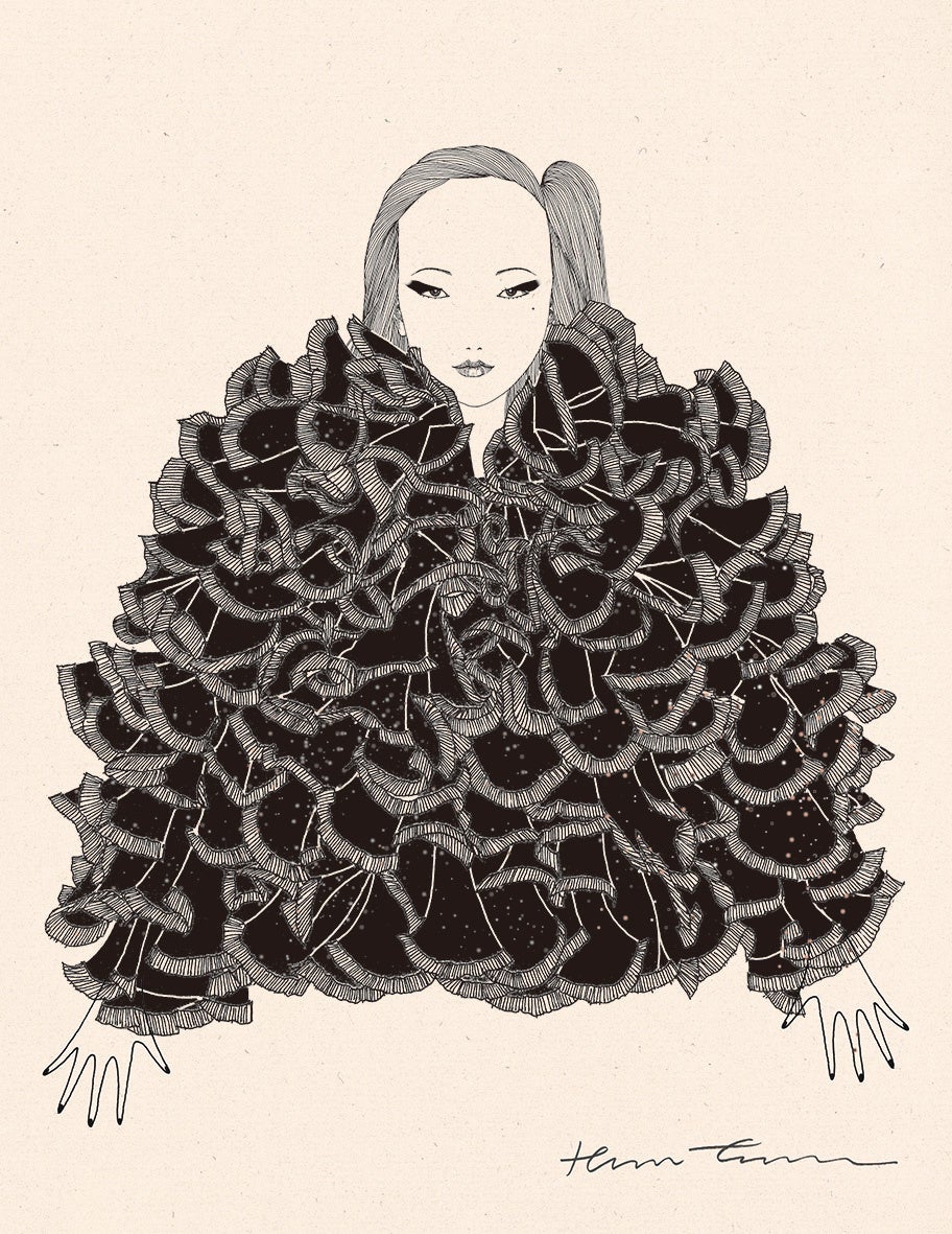 田辺は日本を代表するイラストレーターで、木版画のクリーンなラインを基に洗練された作品を制作しています。