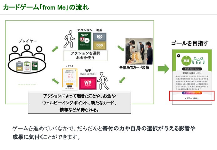 - 参加者がお金の使い方を通じてウェルビーイング向上と社会貢献を体験