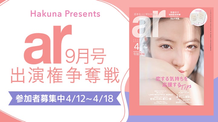 4月12日から「ar9月号出演権争奪戦」がスタートし、女性17歳〜29歳が参加できます。