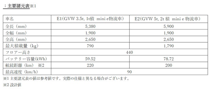 展示車両はE1とE2で、運送業者向けに設計されており、低い荷室が作業効率を向上させます。