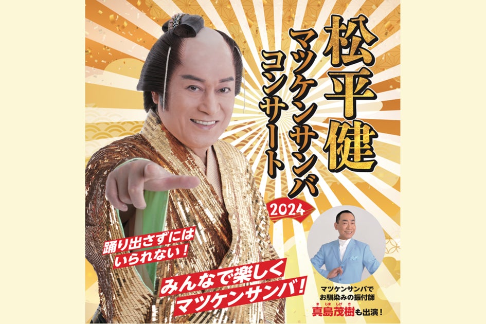 公演名は『松平健 マツケンサンバコンサート2024』で、東京公演は2024年9月14日(土)、神奈川公演は同年9月23日(月・祝)に開催されます。