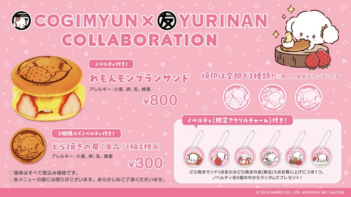 - どら焼きサンド・ドリンク、オリジナルイラスト、缶バッジ、アクリルスタンド、れもんモンブランサンド、ランダム缶バッジ、ミニアクリルスタンド、ダイカットステッカー、ロリポップキャンディー、はなれ、YURINAN本店