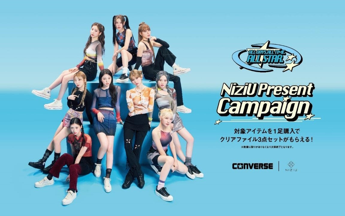 NiziUらしい世界観でCONVERSEの人気アイテムを表現したビジュアル・ムービーが公開され、対象商品購入でプレゼントキャンペーンも実施中です。