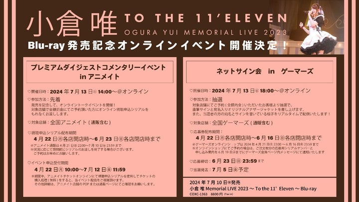 - LIVE Blu-ray「小倉唯 Memorial LIVE 2023~To the 11’Eleven~」