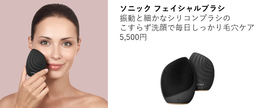 【GESKE】はAI搭載アプリで肌の状態を分析し、美容プランを提供するブランドで、洗顔ブラシや美顔器など多彩な製品を展開しています。