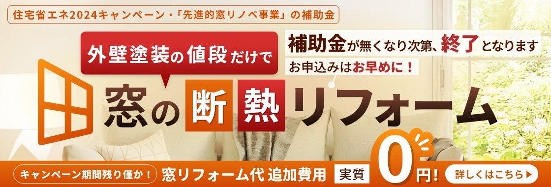 また、外壁塗装と一緒に窓の断熱リフォームが追加費用0円で行えるサービスも開始されています。