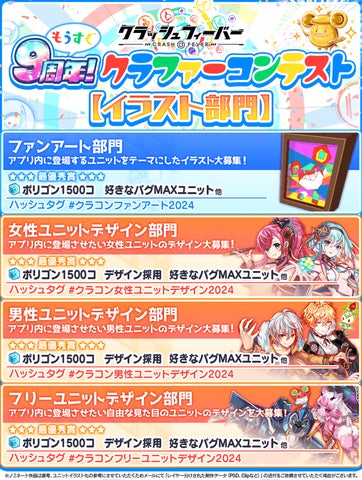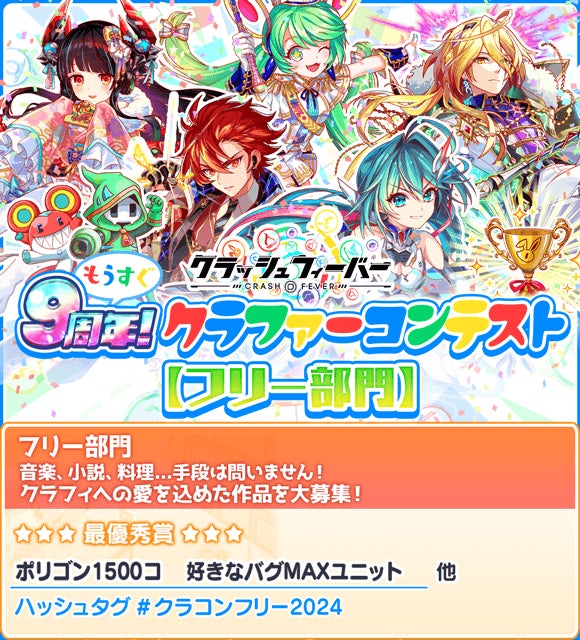 クラッシュフィーバーが9周年を迎える7月に、恒例のクラファーコンテストが開催されます。