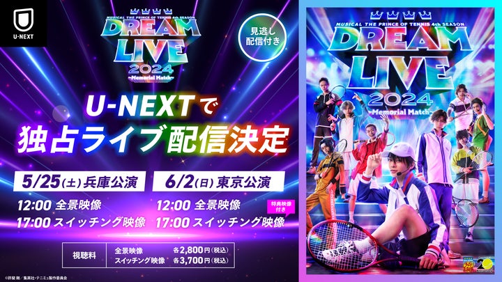 - UNEXTが2024年5月25日から「ミュージカル『テニスの王子様』4thシーズン Dream Live 2024 ~Memorial Match~」を独占ライブ配信