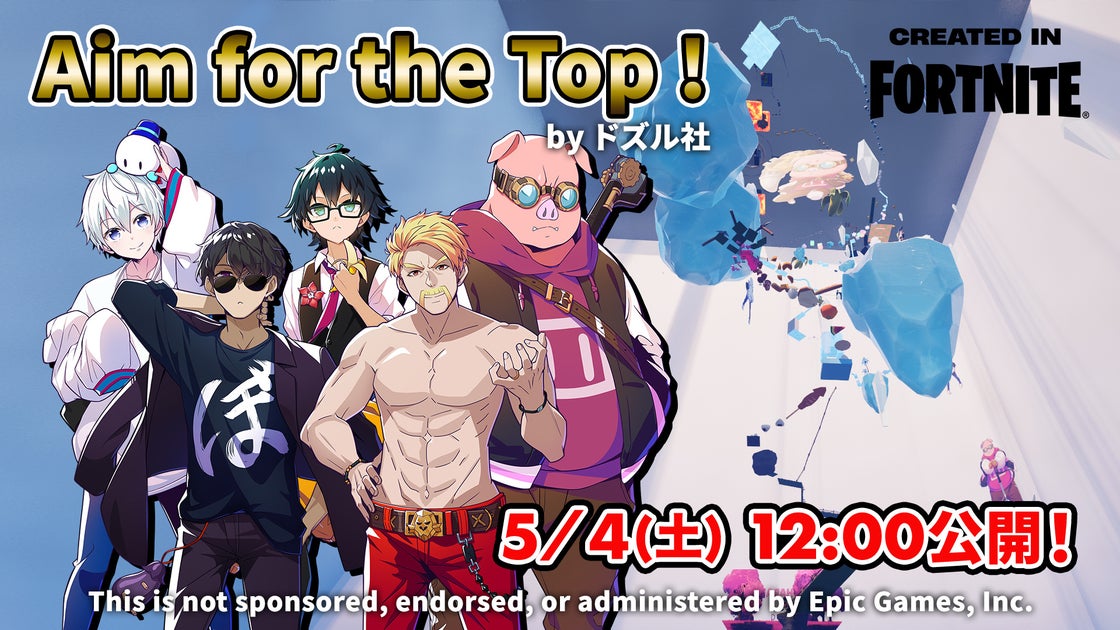 EbuAction株式会社と株式会社ドズルは協力し、人気オンラインゲーム「Fortnite」内で「Aim for the Top ! by ドズル社」を制作しました。