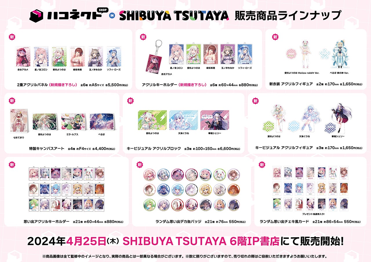 VTuber事務所「ハコネクト」は2024年4月25日に「SHIBUYA TSUTAYA」6階IP書店に「ハコネクト SHOP in SHIBUYA TSUTAYA」をオープンしました。