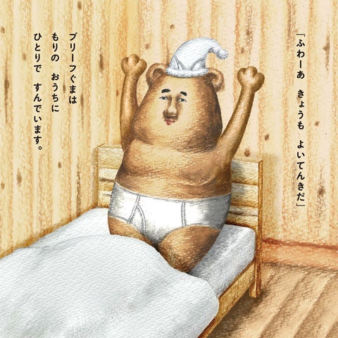 物語では森に住むブリーフぐまがパンケーキを焼く様子が描かれ、クセのある森の動物たちも登場します。