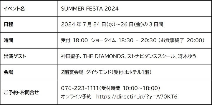 夏の金沢エンターテインメント「SUMMER FESTA 2024」観覧チケット付き宿泊プラン予約開始