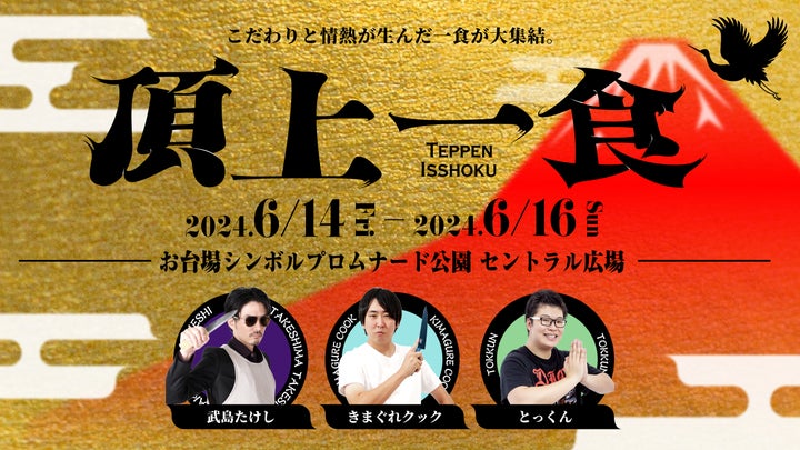 - 頂上一食、TEPPEN ISSHOKU、お得な前売りチケット、イベント、指定席チケット、2024年6月14日、お台場、入場料、無料、飲食代、アクセス、公式SNS、最新情報