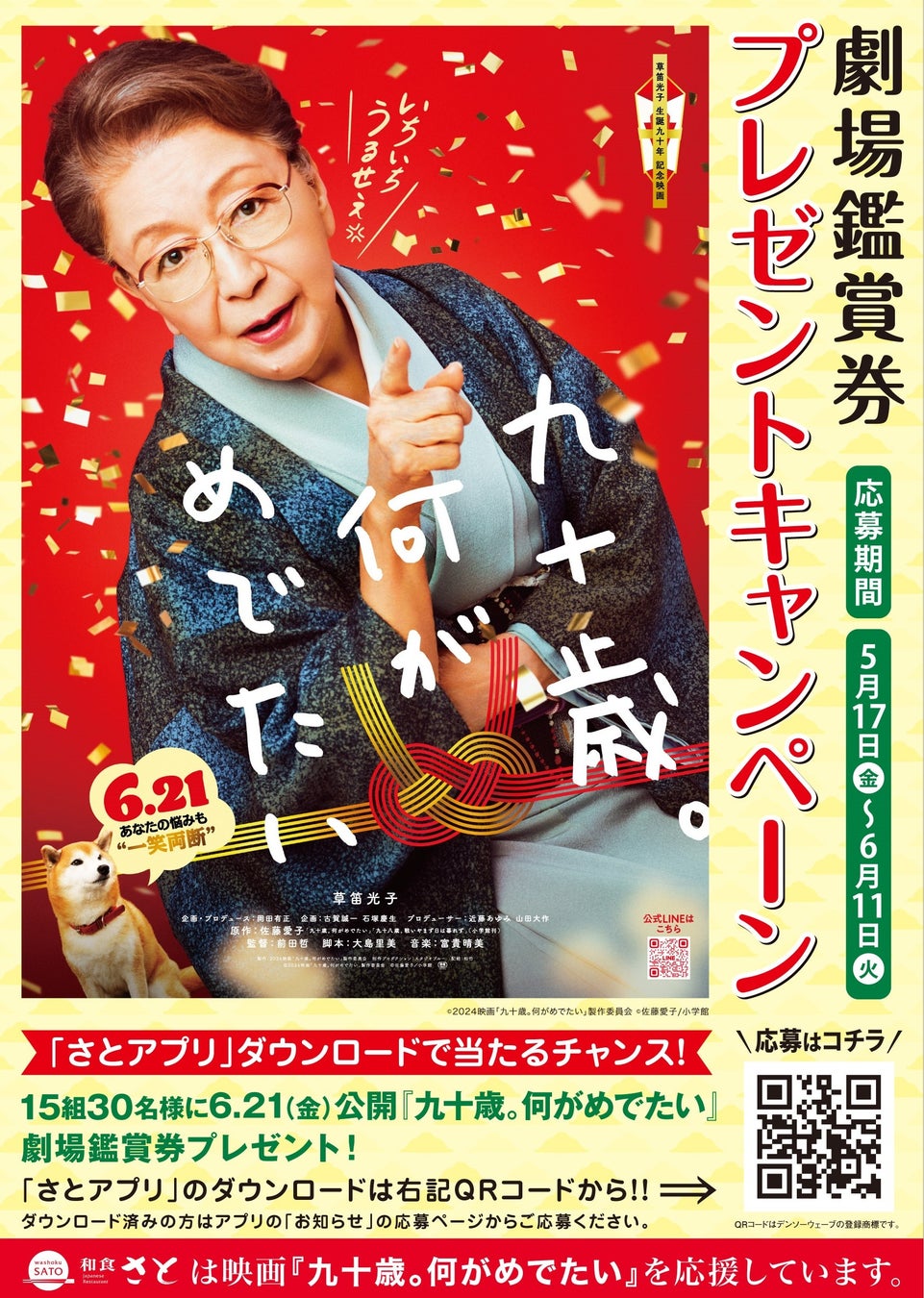 和食さと公式アプリをダウンロードすれば、映画「九十歳。