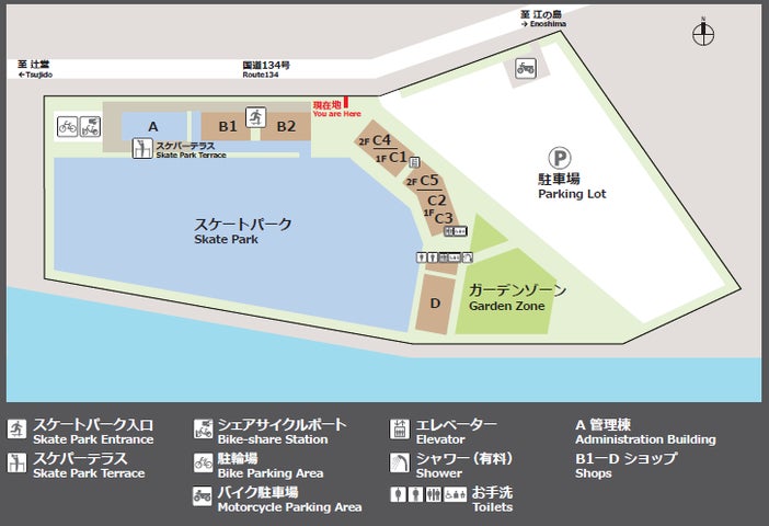 - 公園全体は木造建物や海岸に隣接し、海を眺めながら解放感を味わえる