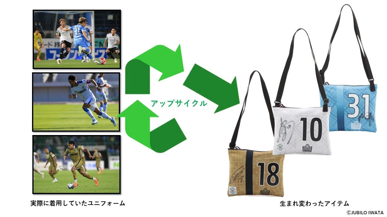 アップサイクルプロジェクトでは選手が着用したゲームパンツをサコッシュにリユースし、直筆サイン入りでオークションに出品されます。