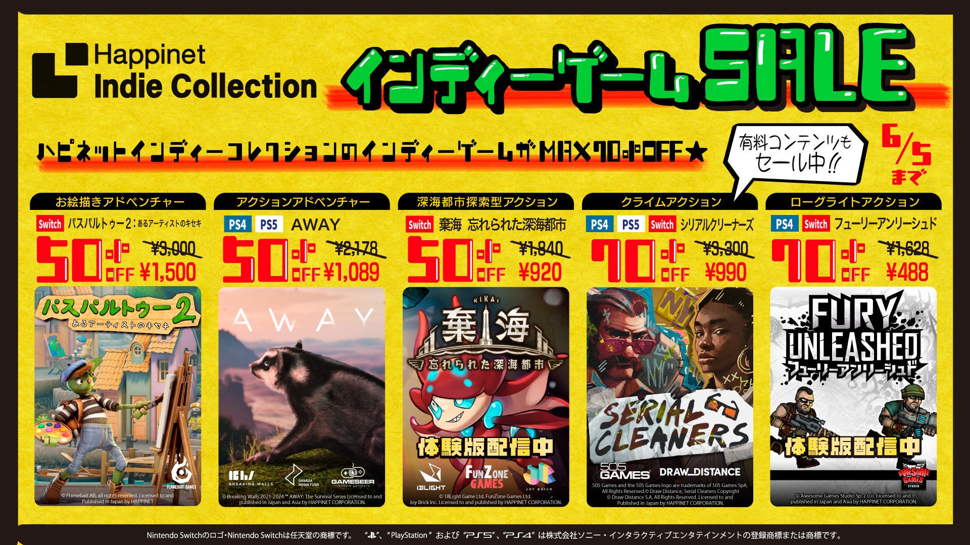 - 株式会社ハピネットがHappinet Indie Collectionのダウンロード版を70%OFFで販売中