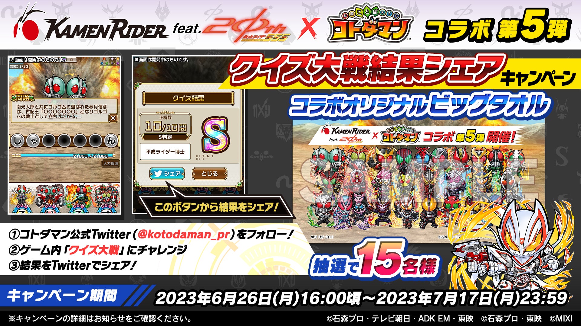 【名称】       仮面ライダー×コトダマンコラボ第5弾 クイズ大戦結果シェアキャンペーン