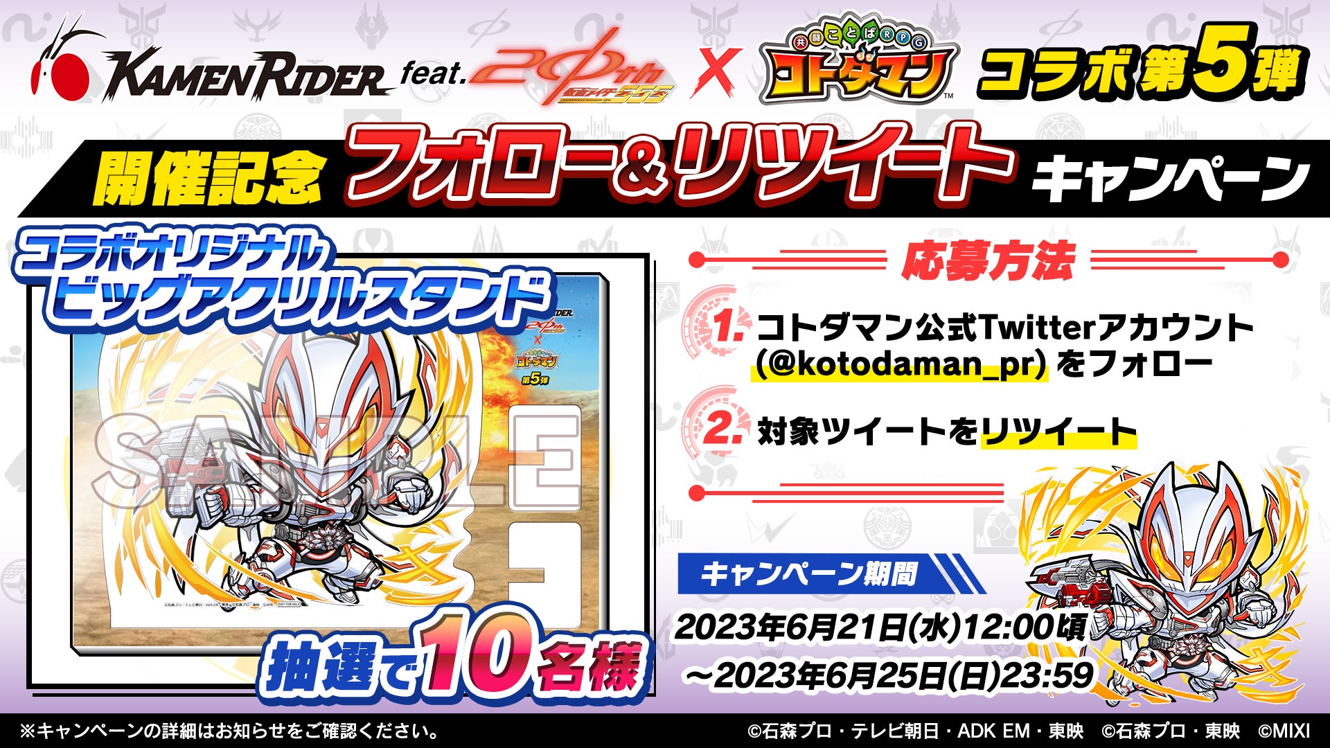 【名称】       「仮面ライダー×コトダマンコラボ第5弾」開催記念フォロー&リツイートキャンペーン