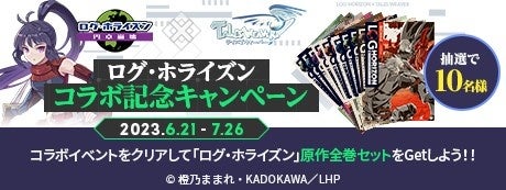 - 共同作戦を実行し、7つのイベントをクリアすると、記念アバターやAmazonギフトカード、『ログホライズン』原作全巻セットが当たるキャンペーンも実施中