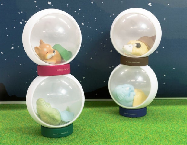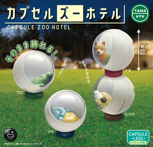 「カプセルズーホテル」は、カプセル型のホテルに入れる動物フィギュアを飾るアイテムです。