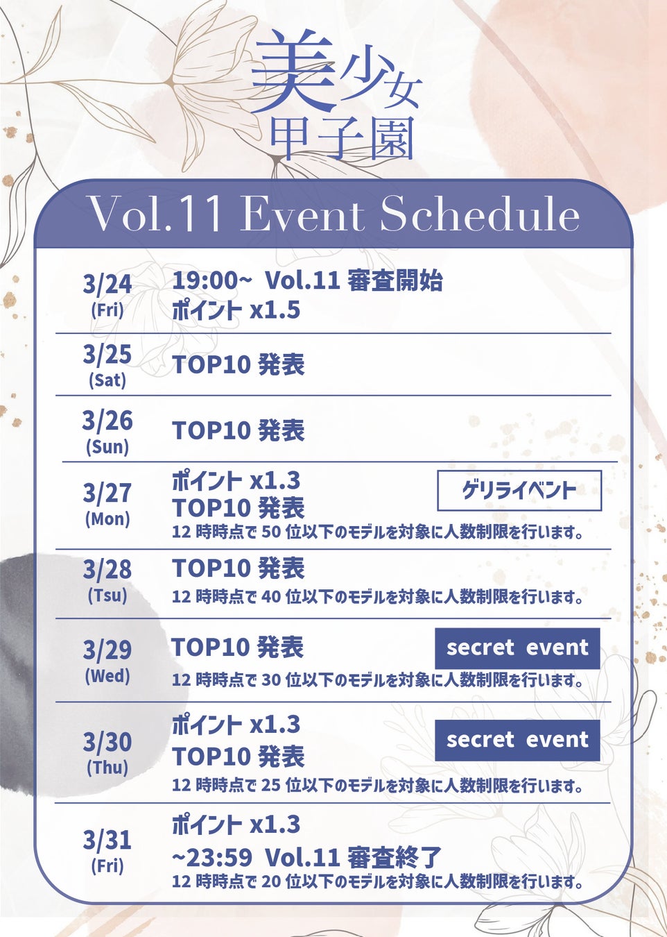 - 「美少女甲子園Vol.11」は2023年3月24日から31日まで開催される。