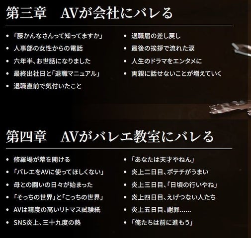 また、AV出演が原因でバレエ講師を解雇された経験も著者プロフィールに記載されています。