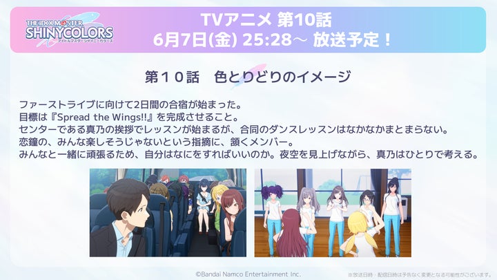 アイドルマスター シャイニーカラーズの第10話「色とりどりのイメージ」では、ファーストライブに向けた2日間の合宿がスタート。