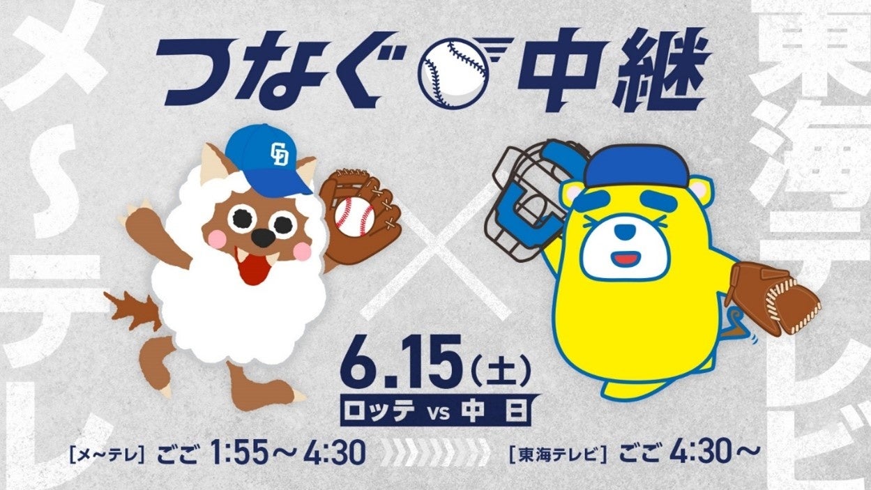 名古屋テレビ放送(メ~テレ)と東海テレビは6月15日にプロ野球セ・パ交流戦「ロッテvs中日」をリレー生中継します。