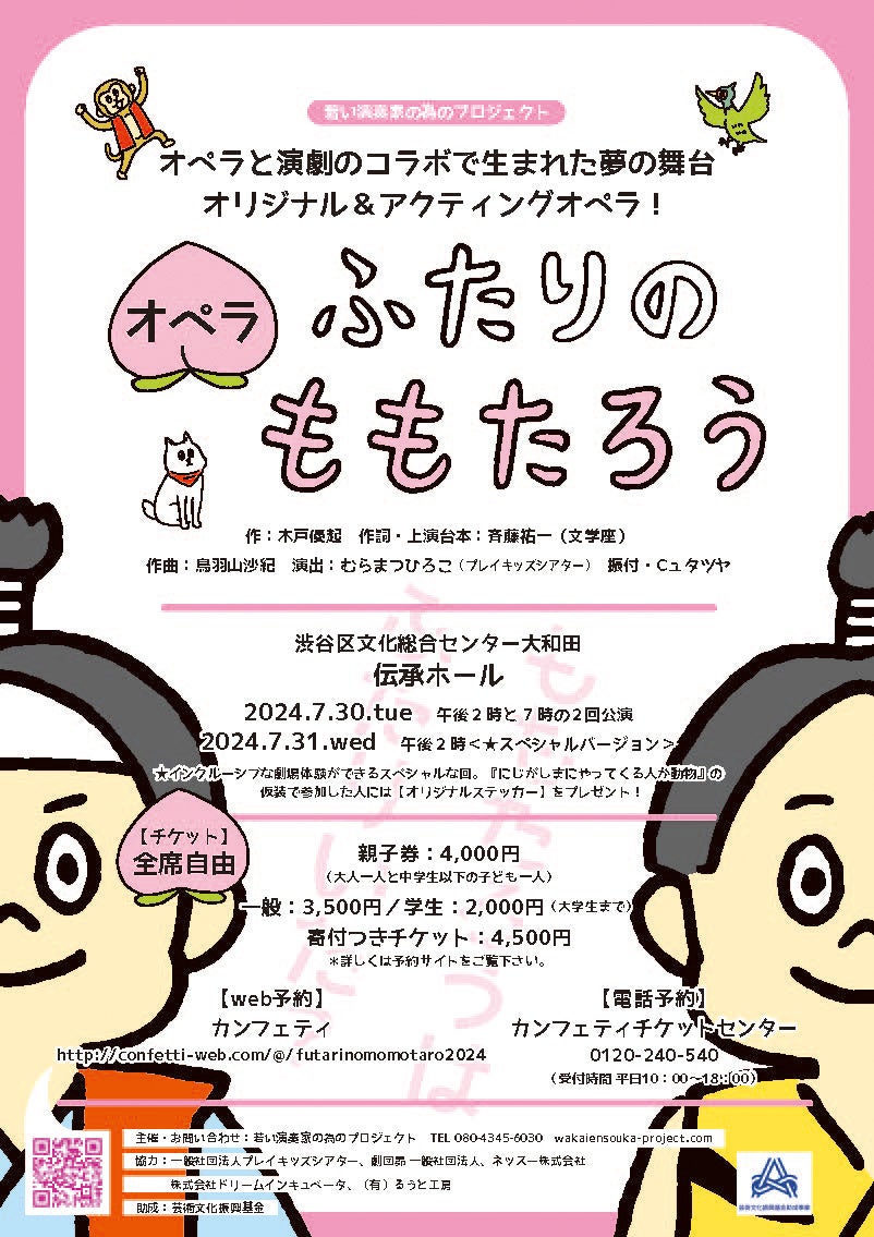 2024年7月30日から31日に、渋谷区文化総合センターで開催されるオペラ『ふたりのももたろう』の公演情報です。