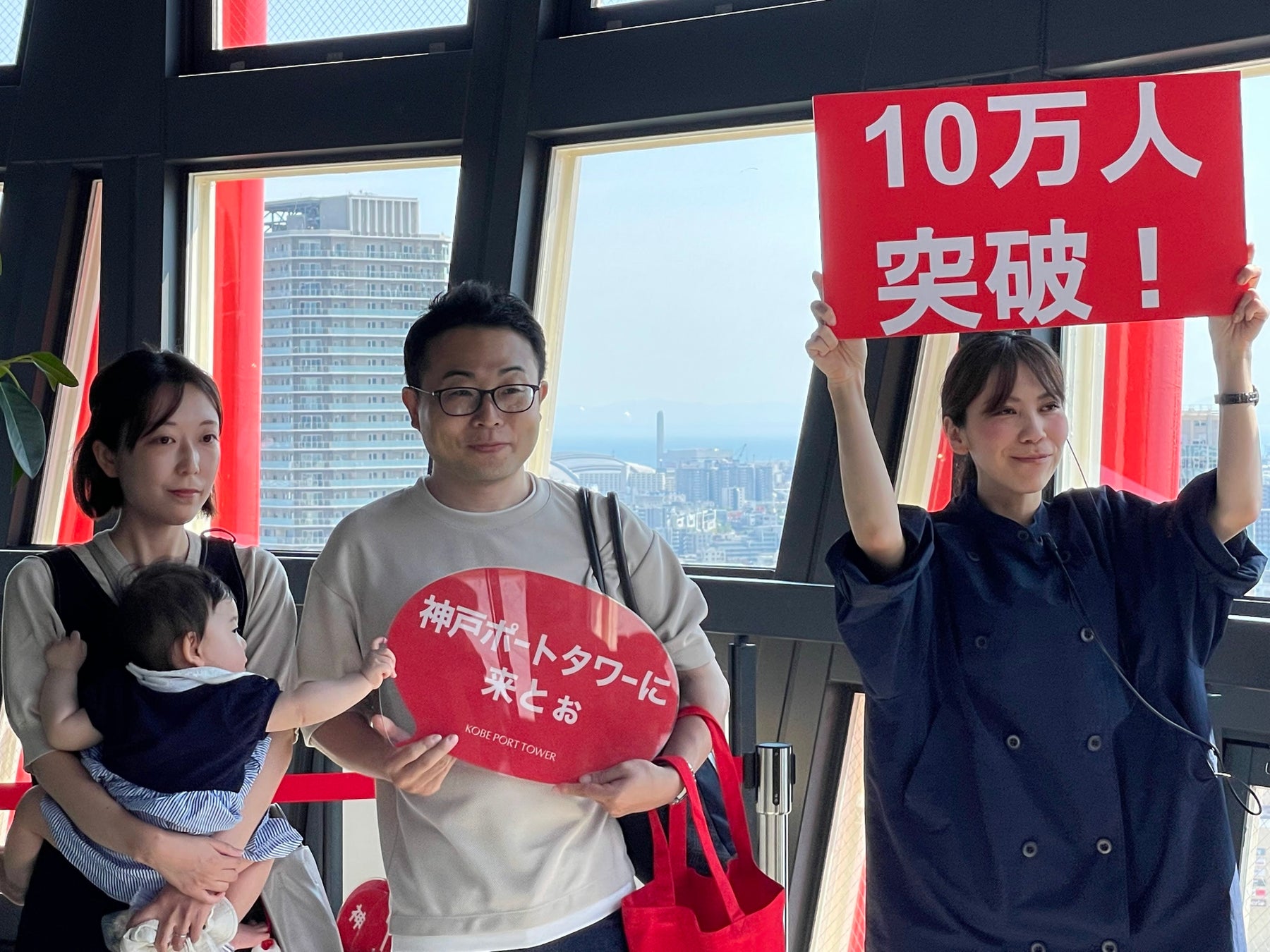 10万人目のお客様は竹内祐太さん、由莉さん、柚葉ちゃんです。