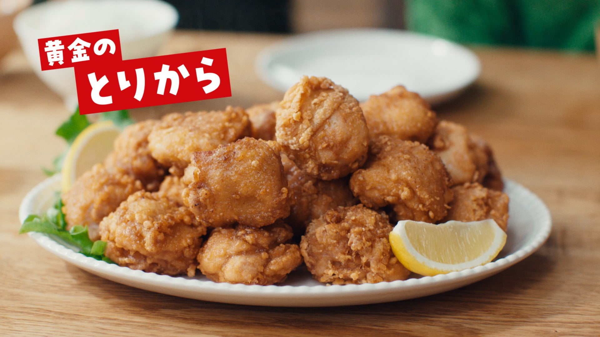 - 新CMでは「黄金のとりから」「黄金のポークチャップ」を紹介し、家族の幸せそうな表情が印象的