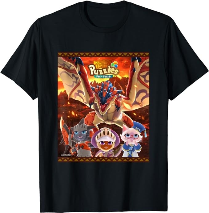 また、Amazonで販売中のカプコン公式アパレルに、『モンスターハンターパズル アイルーアイランド』のデザインが追加されました。