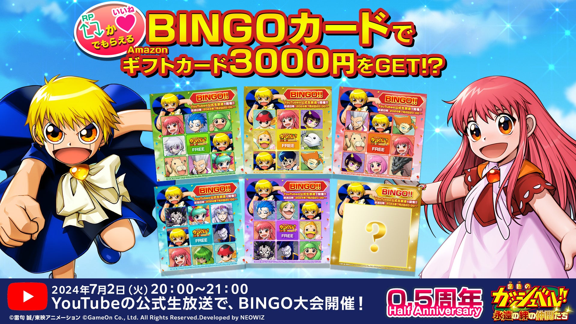 - 『金色のガッシュベル!! 永遠の絆の仲間たち』が0.5周年を迎え、ハーフアニバーサリーを記念した生放送が7月17日(水)に決定。