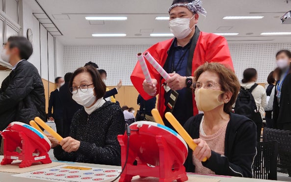 参加者は、市販のリズムゲームと和太鼓コントローラを用いたeスポーツを体験し、音楽や画面表示に合わせて和太鼓コントローラをたたくことで「ちょっとした運動になった」と感じた。