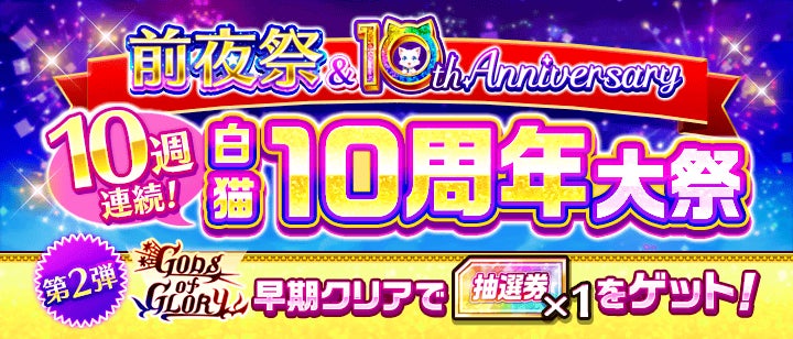 さらに、6月21日から開催されている「10周年前夜祭キャンペーン」の第2弾として、新イベント「GODS of GLORY」をクリアすると「キャラ抽選券」を獲得できます。