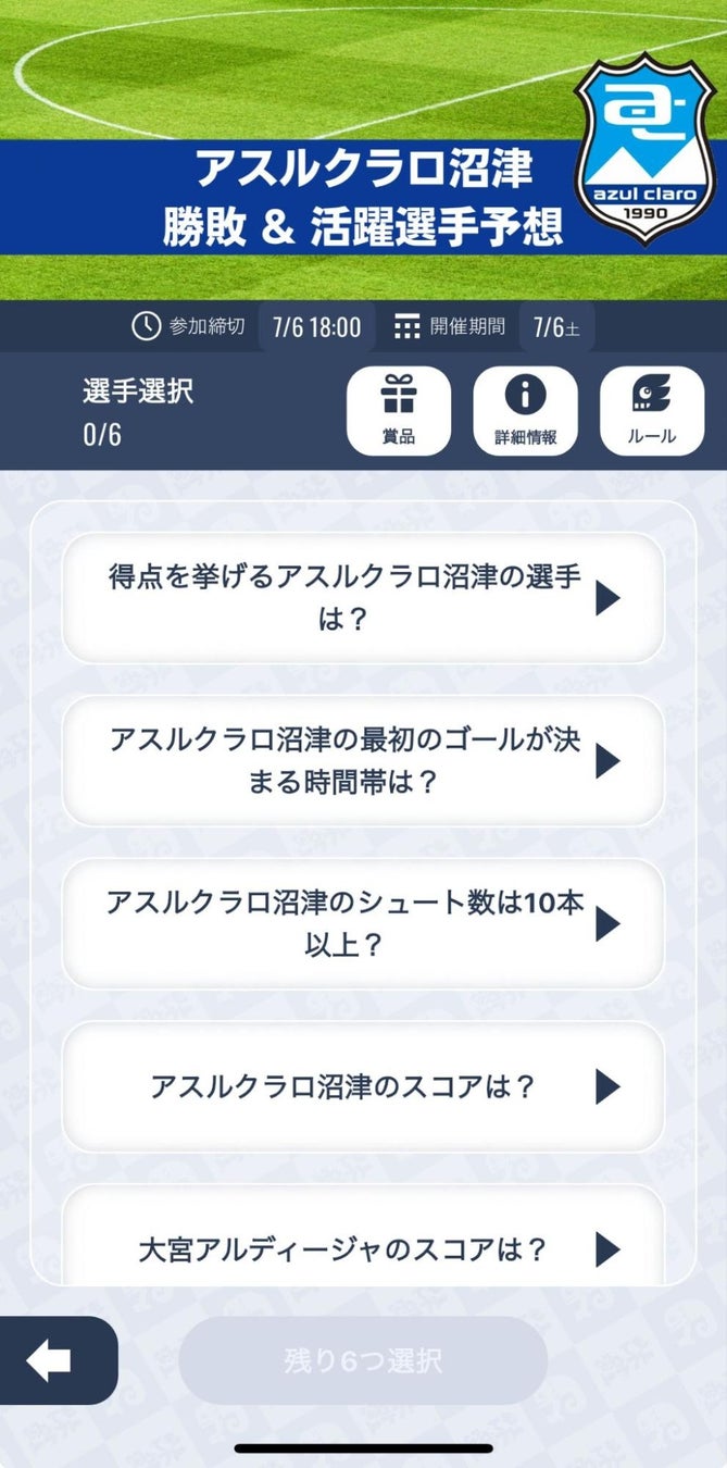 - 予想成績1位にはアスルクラロ沼津全選手サイン入りポスターがプレゼントされる。
