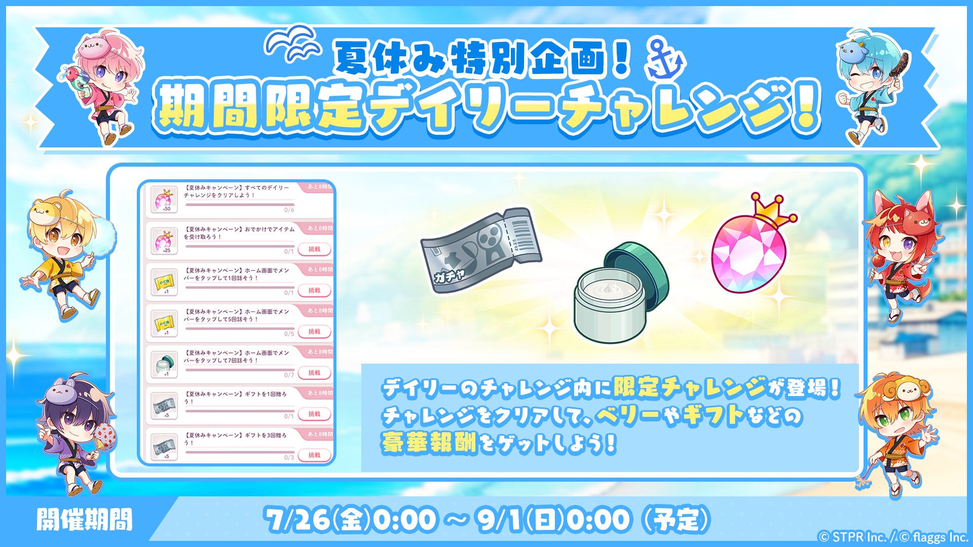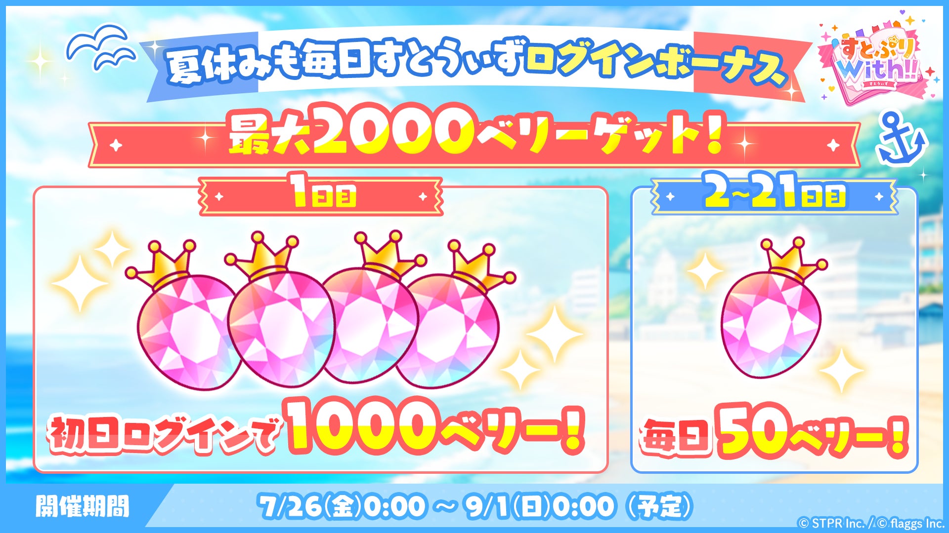 - 公式ゲームアプリ『すとぷりWith!!』が7月26日から9月1日まで「夏休み特別キャンペーン」を開催中。
