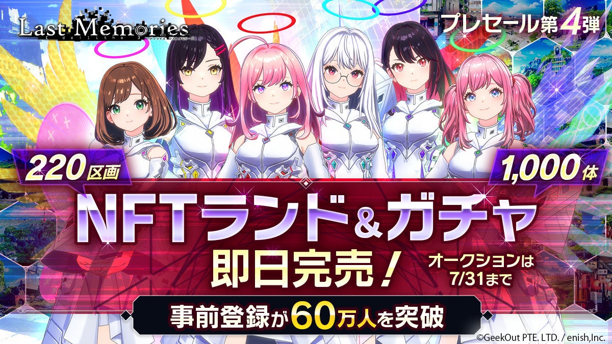 - ブロックチェーンゲーム『De:Lithe Last Memories』のパブリックセール第4弾で、NFTドール1,000体とNFTランド220区画が完売。