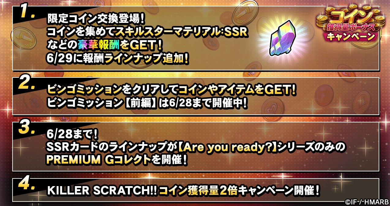 - 「天国獄 BIRTHDAY イベント」や「SUDDEN SCRATCH!!~Special~」などのキャンペーンも開催