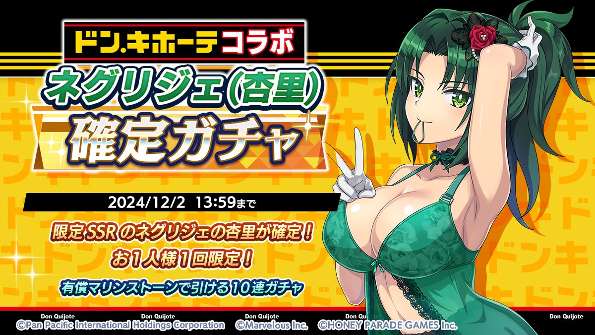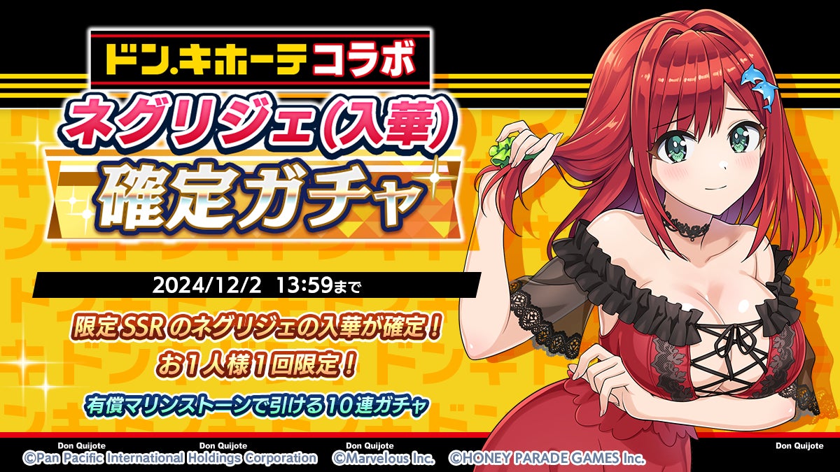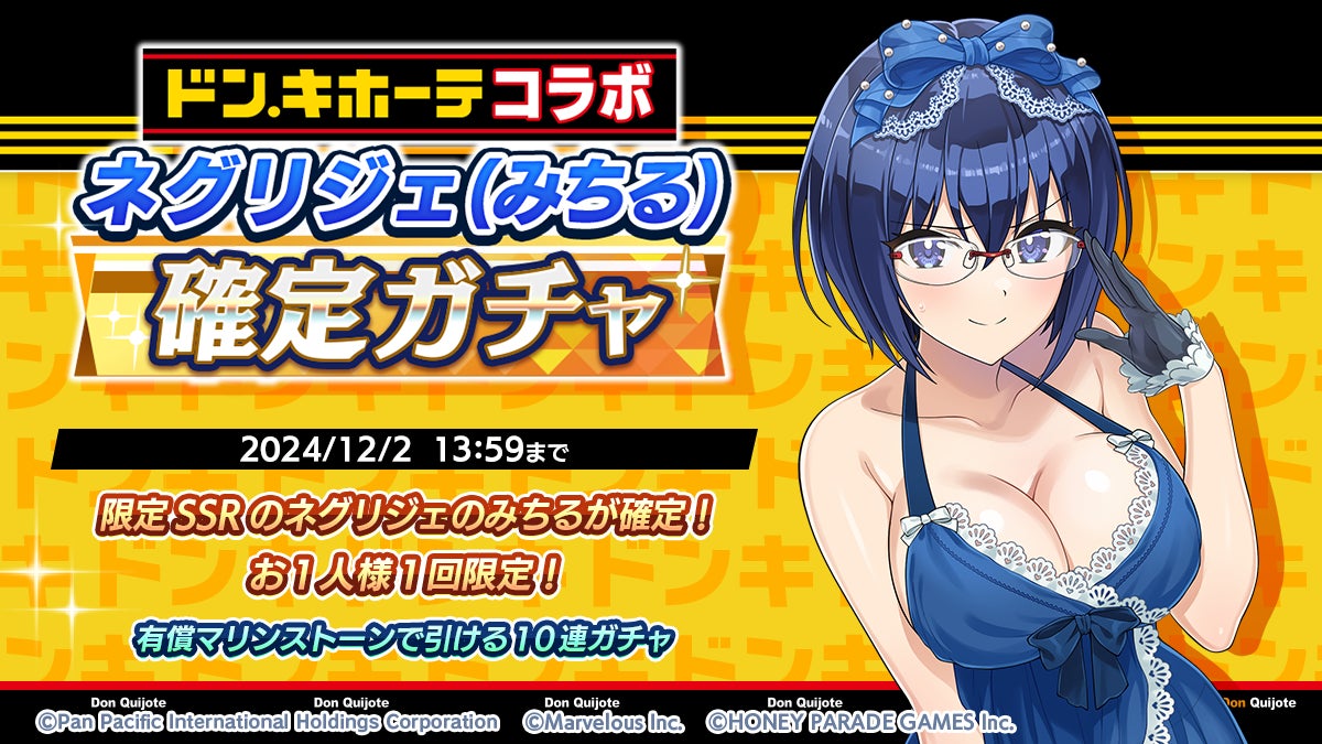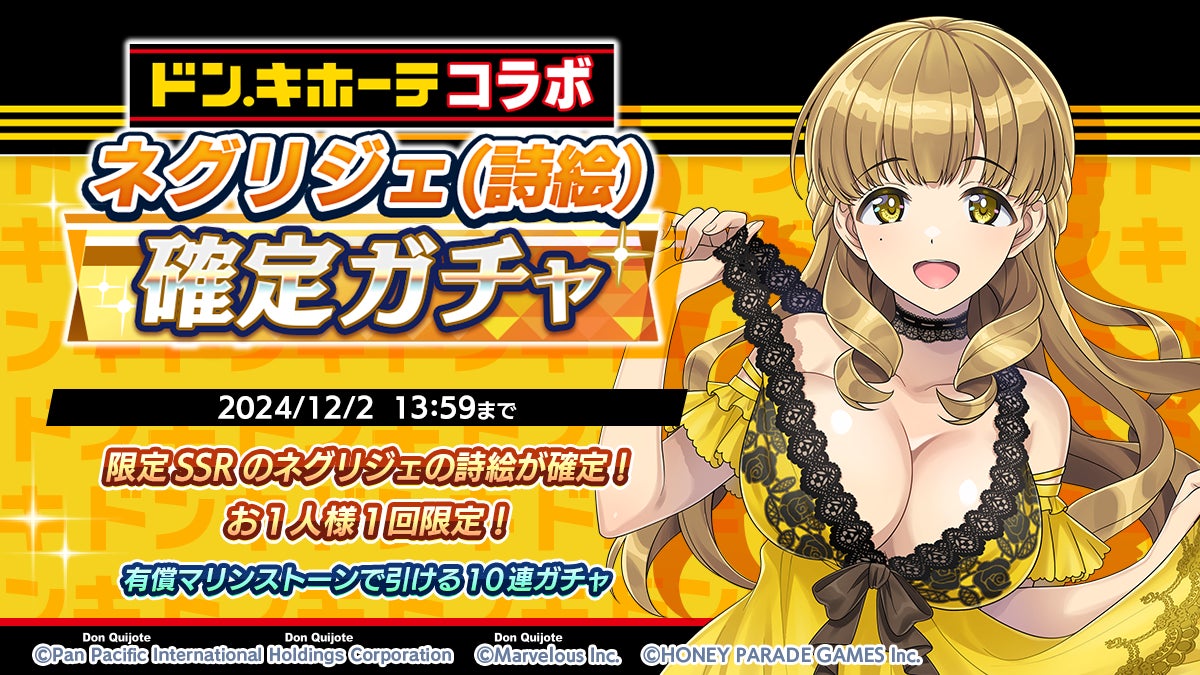 コラボ限定ドルフィンは、SSR 黒瀬 見波(ドン・キホーテコンパニオン)、UR 山葉 由芽(ドン・キホーテCPガール)など、ドン・キホーテをイメージした衣装を身につけたキャラクターが登場します。