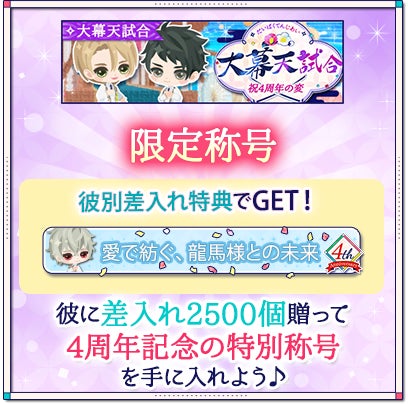 - 『幕末維新 天翔ける恋』配信4周年記念企画多数開催