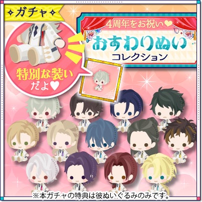 1月19日より開始された企画には、アプリ内イベントとして「幕天ぐらんぷり」(アバター化をかけた投票イベント)、「4周年記念特典(金ぴか像)」「物語イベント(過去を振り返るストーリー)」「おすわりぬいコレクション(ガチャ)」「周年イベント(アイテムを集めて応援するイベント)」「4周年記念ログインボーナス」などが含まれます。