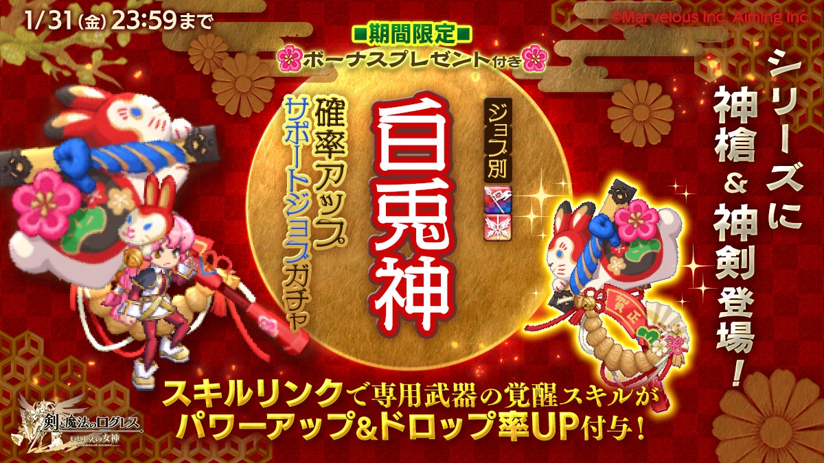 - 「選抜10連ガチャ」「ジョブ別 白兎神確率アップサポートジョブガチャ」開催