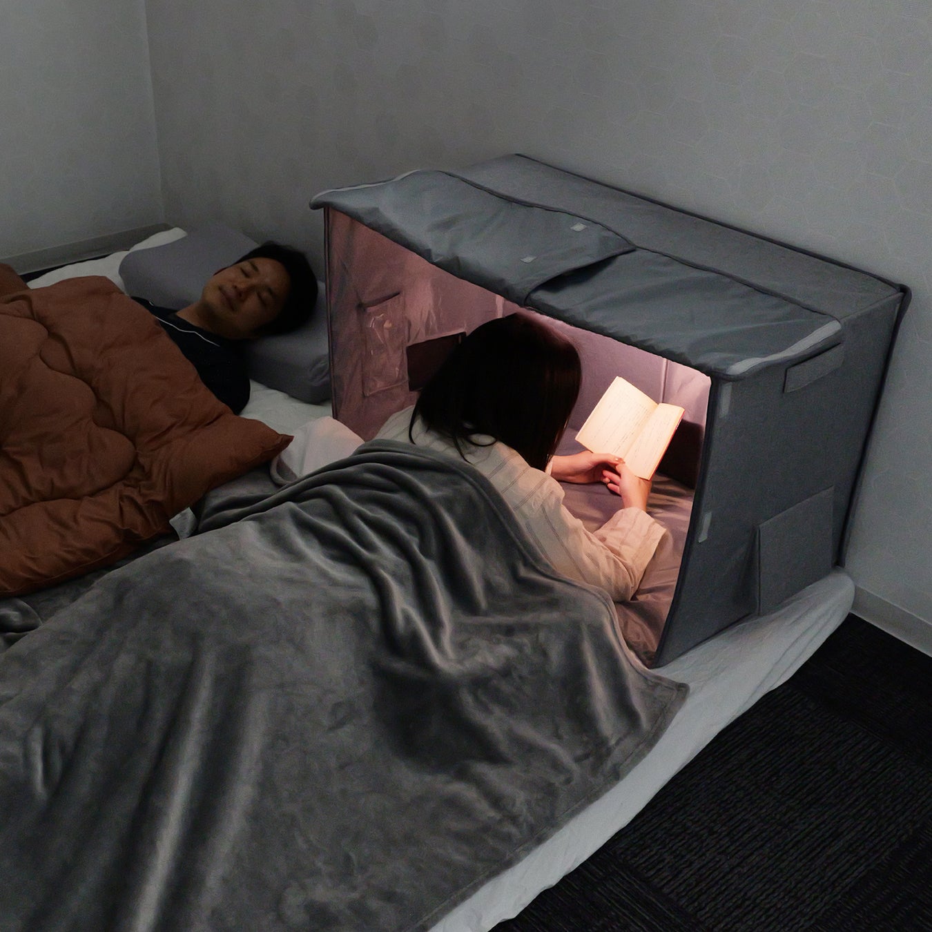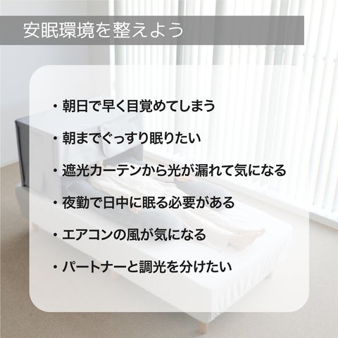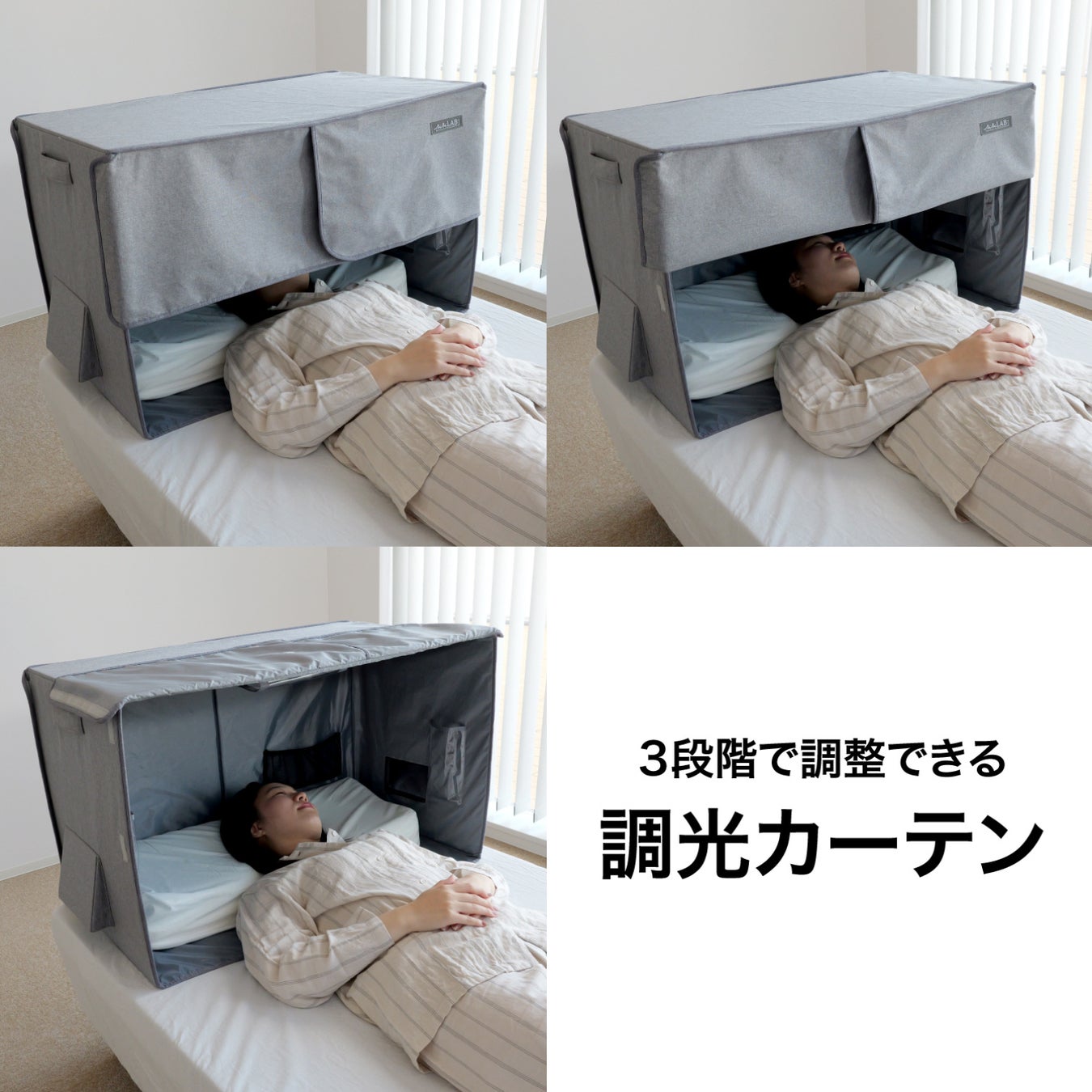 安眠サポートモードでは、3段階の調光カーテンで光を遮断し、質の高い睡眠をサポートします。