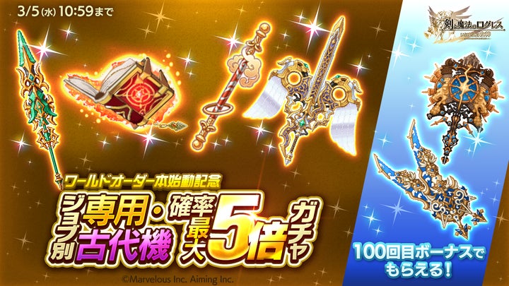 - ジョブ別ガチャで専用武器・古代機獲得確率最大5倍キャンペーン実施