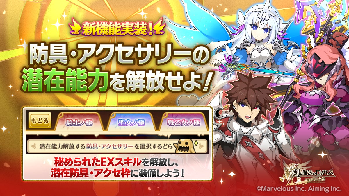株式会社マーベラスは、スマホ向け本格オンラインRPG『剣と魔法のログレス いにしえの女神』において、2025年2月19日に「ワールドオーダー」の本始動と新機能「潜在能力解放」を実装するアップデートを行いました。