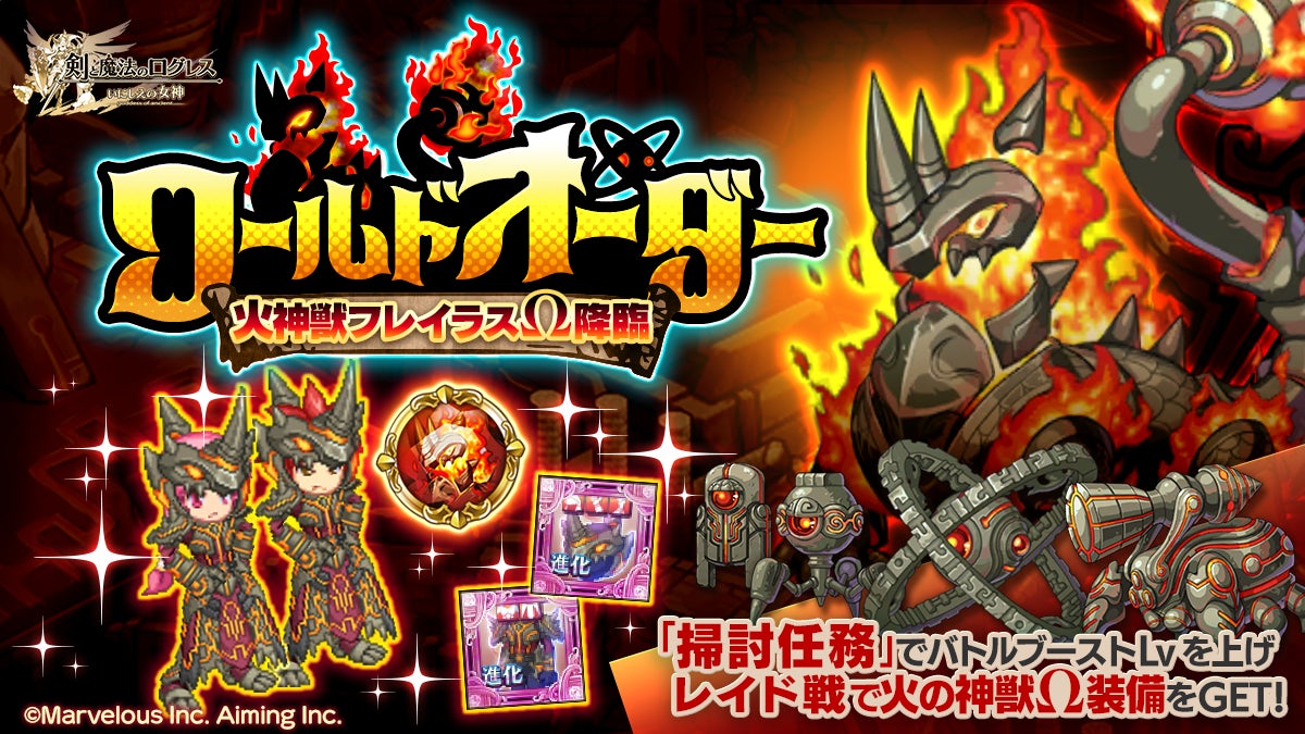 - 新レイドイベント「火神獣フレイラスΩ降臨」開催、新装備獲得可能