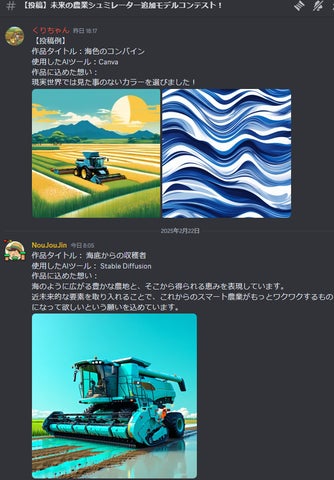 2025年2月22日〜3月7日の応募期間中に、コミュニティメンバーは生成AIを用いて未来のコンバインデザインを提案し、投票で優秀作品を選出。