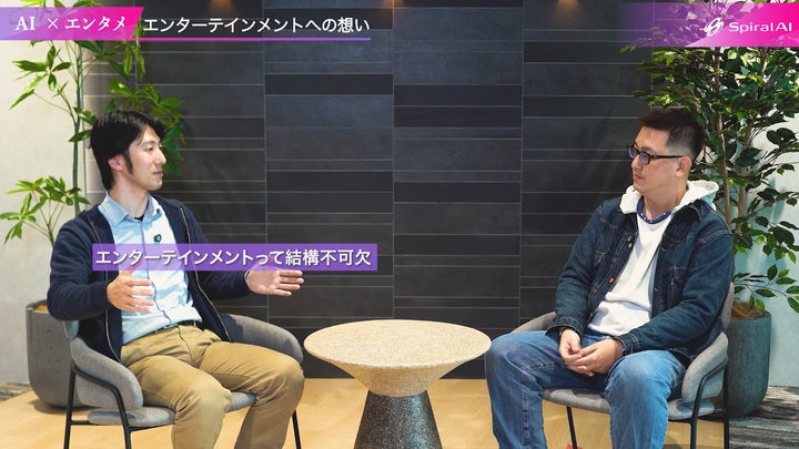 対談では、AIがエンターテインメントに新たな可能性をもたらすこと、SpiralAIが目指す「遊び心」と「ワクワク感」を重視したAI開発、そして杉中氏のゲーム開発における豊富な経験などが語られています。